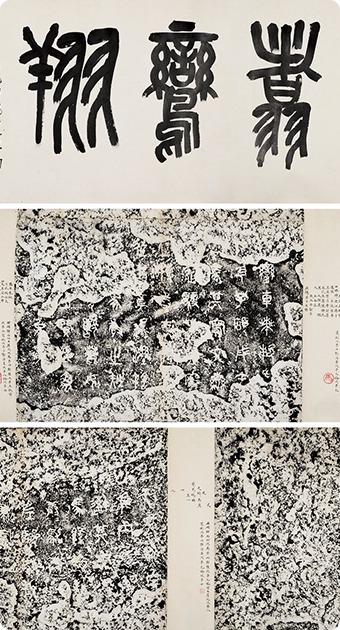 是卷除拓本本身拓制较早,椎拓精良,存世稀少之外,最大的亮点莫过于吴昌硕的引首及王国维的跋尾。款文中誉此卷“古香可掬”,“为稀世之珍”,更可见此卷之难得。《石鼓文》存世拓本虽不算太少,但多是清末所拓,早期拓本凤毛麟角,民间更是一纸善拓难求,其可贵在某种程度上更胜于原石本身。而民国时顶级艺术家与顶级学者的合作,更是珍贵!